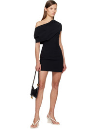 Viscose-blend crepe minidress. · Draping throughout · Asymmetric off-the-shoulder construction · Concealed zip closure at back Supplier color: Black 70% polyester, 30% viscose. Made in Romania 252553F052007
