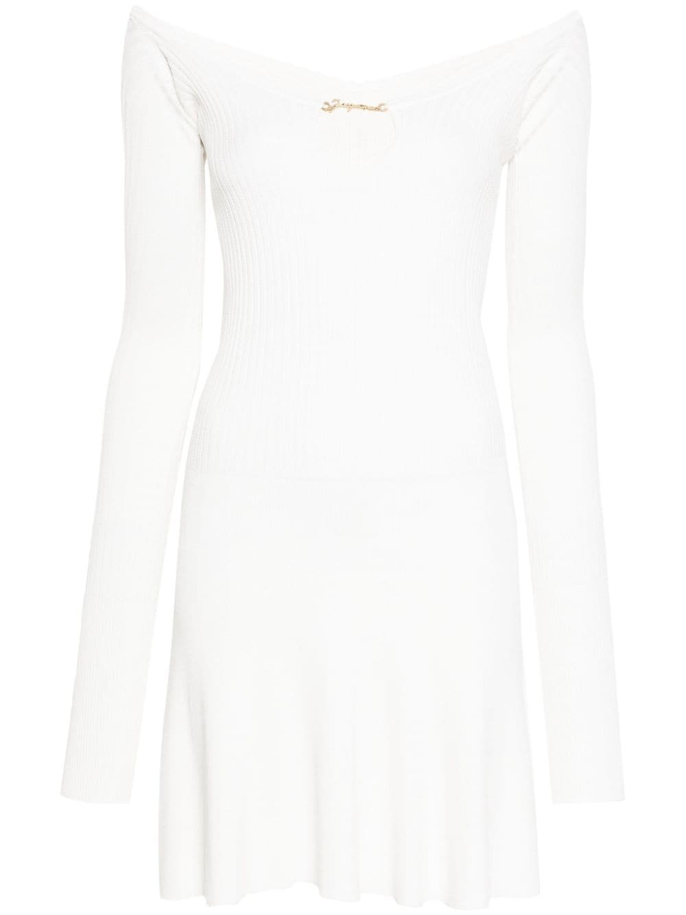 La Robe ribbed minidress Highlights - Off-white - Ribbed knit - Scallop edge - Gold-tone logo plaque - V-neck - Long sleeves - Ribbed cuffs - Flared skirt - Straight hem - Above-knee length - Unlined Imported Composition Viscose 94%, Polyester 6% SIZE & FIT Model measurements Height 5 ft 10 in(1.78 m) Bust/Chest 32.28 in(82 cm) Hips 35.43 in(90 cm) Waist 24.8 in(63 cm) FittingInformation Designed for a slim fit that sits just away from the body offering a close yet comfortable fit Made with a midweight knit, this piece offers some stretch This piece fits true to size – take your usual size