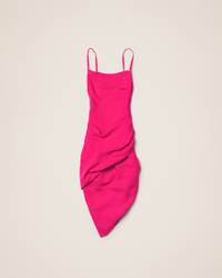LE PAPIER Asymmetric draped mini dress - Fitted shape - Textured blended viscose - Adjustable lingerie straps with gold metal buckle - Draped neckline - Gathered and draped from the hip - Open along one leg - Open back 88% Viscose - 12% Polyamide/Nylon Made in Romania Ref.213DR106-1020-430