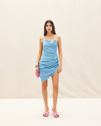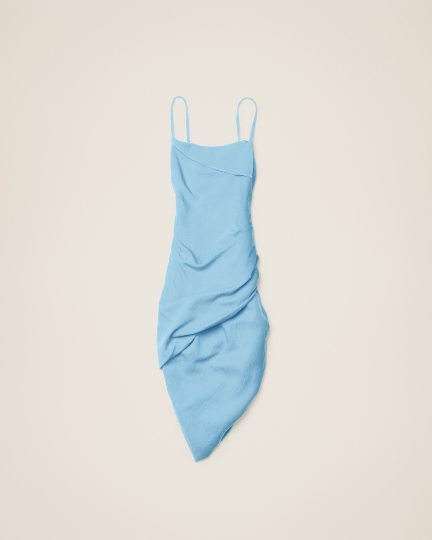 LE PAPIER Asymmetric draped mini dress - Fitted shape - Cotton voile - Adjustable lingerie straps with gold metal buckle - Draped neckline - Gathered and draped from the hip - Open along one leg - Open back 100% Cotton Made in Romania Ref.213DR106-1061-320