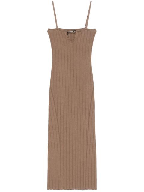 La robe Sierra a bretelles midi dress Highlights - Light brown - Adjustable spaghetti straps - Keyhole neck - Logo plaque - Straight hem Made in Italy Composition Viscose 88%, Polyester 12% SIZE & FIT Model measurements Height 5 ft 9 in(1.75 m) Bust/Chest 34.64 in(88 cm) Hips 36.61 in(93 cm) Waist 26.37 in(67 cm) FittingInformation Designed for a close fit throughout The adjustable shoulder straps allow for a preferred fit when worn Made with a midweight knit, this piece offers some stretch Washing instructions Hand Wash