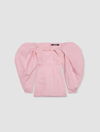 Jacquemus' La robe Taffetas draped fitted mini dress. Puff neckline with exposed shoulders and long sleeves. Product Reference Code: 233DR062-1472 410
