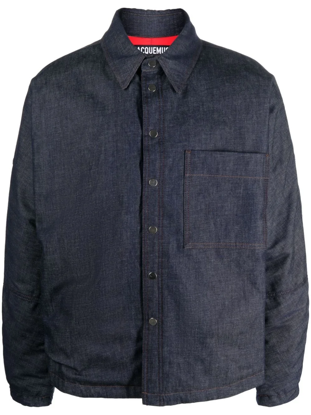 La Surchemise de Nimes overshirt Jacquemus pays homage to the denim’s roots with this overshirt. Named La Surchemis de Nimes, it references the supposed birthplace of the now ubiquitous fabric. It arrives in an indigo blue hue and is enhanced with a patch pocket on the chest while a logo tag to the rear lends a branded finish/ Highlights - Indigo blue - Cotton - Classic collar - Long sleeves - Logo tag - Front press-stud fastening - Chest patch pocket - Straight hem Made in Italy Composition Regenerative Cotton 100% SIZE & FIT Model measurements Height 6 ft 0 in(1.84 m) Bust/Chest 36.22 in(92 cm) Hips 35.43 in(90 cm) Waist 26.77 in(68 cm) FittingInformation Designed to be unstructured, offering a loose fit throughout Made from a padded non-stretch fabric, giving it no natural elasticity This piece fits true to size – take your usual size Washing instructions Machine Wash