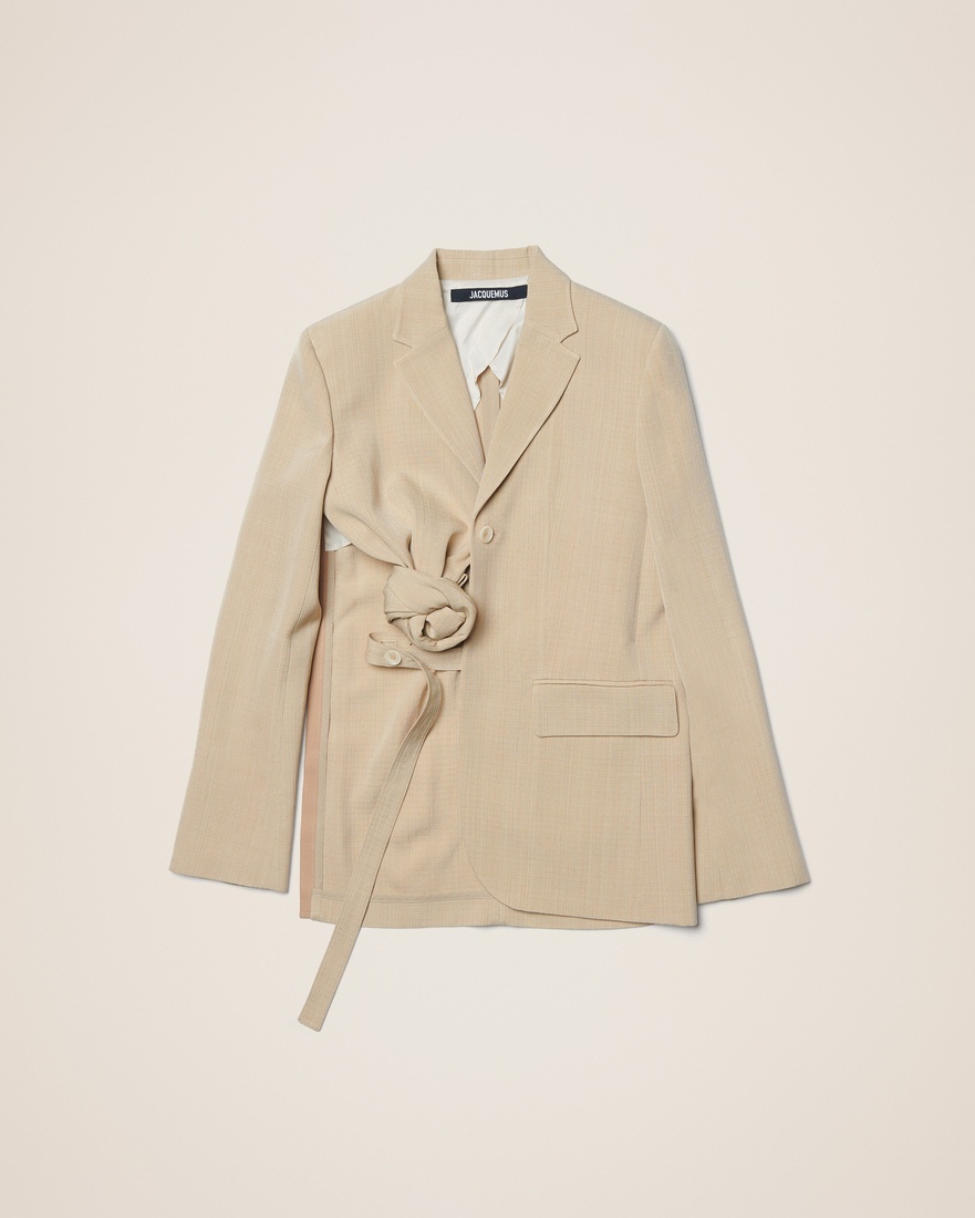 LE PAPIER Knotted blazer - Relaxed, asymmetric fit - One button closure - Front panel with fixed ball knot - Flap pocket - Adjustable interior belt 57% Viscose - 43% Silk Made in Portugal Ref.223JA021-1066-180