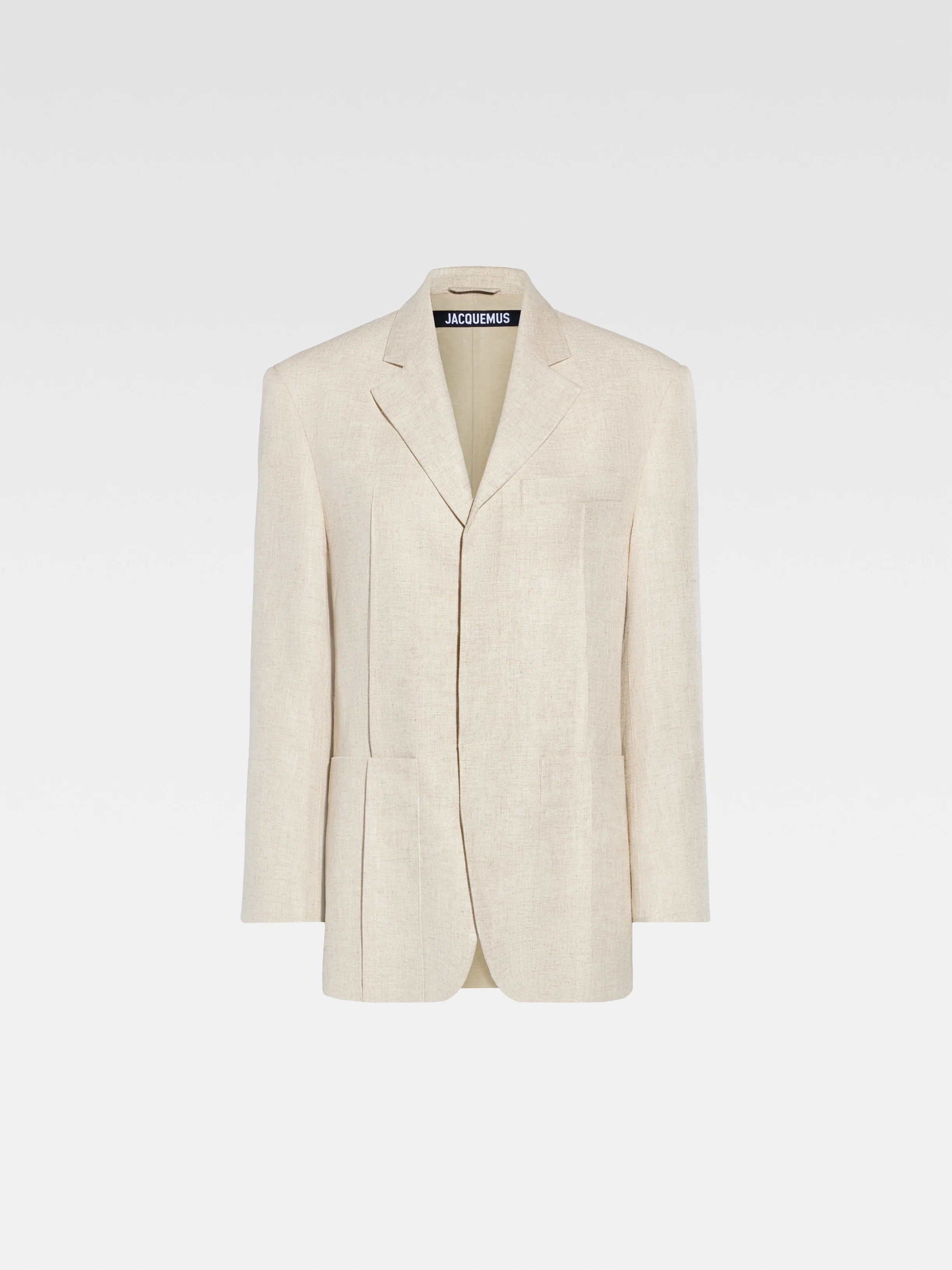 Les Classiques Square jacket - Boxy fit inspired by the men's wardrobe - Stretch wool-viscose - Notched lapel - Chest welt pocket and large patch pockets - Hidden button placket - Inverted darts down the front - Interior welt pocket 70% Viscose - 30% Linen / Lining: 49% Cotton Made in Romania Ref. 213JA101-1358-130
