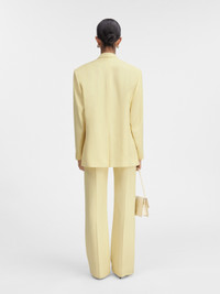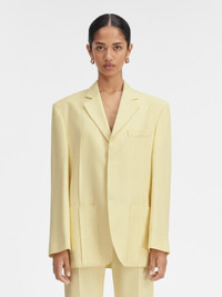 LES SCULPTURES Square jacket - Boxy fit inspired by the men's wardrobe - Stretch wool-viscose - Notched lapel - Chest welt pocket and large patch pockets - Hidden button placket - Inverted darts down the front - Interior welt pocket The model is 178 cm and wears a size 34 100% Viscose - 65% Polyester - 35% Cotton / Lining: 48% Acetate - 46% Cotton - 6% Elastane Made in Romania Ref.213JA101-1359-205