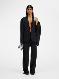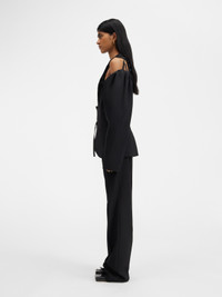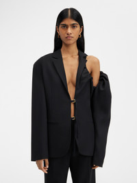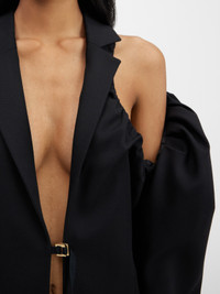 LE CHOUCHOU Asymmetric sleeve blazer - Fitted shape - Notched lapel - One exposed shoulder with a puffed sleeve and adjustable attached strap - One boxy shoulder with a classic sleeve - Adjustable metal D-ring fasteners - Welt pockets The model is 171 cm and wears a size 34. 100% Virgin wool / Lining : 49% Cotton - 46% Acetate - 5% Elastane Made in France Ref.233JA040-1333-990