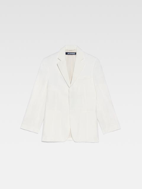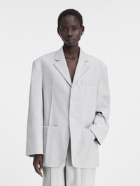 LA CASA Square jacket - Boxy fit inspired by the men's wardrobe - Stretch wool-viscose - Notched lapel - Chest welt pocket - Hidden button placket - Inverted darts down the front - Oversized patch pockets - Interior welt pocket - Fully lined The model is 177cm and wears a size40 35% Polyester - 34% Cotton - 29% Virgin wool - 2% Elastane Made in Romania Ref. 213JA101-1660-910