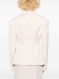 La Veste Norma blazer Highlights - Ecru - Double-breasted button fastening - Shoulder pads - Two front flap pockets - Long sleeves Imported Composition Outer: Viscose 51%, Linen/Flax 43%, Polyamide 6% Lining: Viscose 52%, Cotton 48% SIZE & FIT Model measurements Height 5 ft 9 in(1.75 m) Bust/Chest 34.64 in(88 cm) Hips 36.61 in(93 cm) Waist 26.37 in(67 cm) FittingInformation Designed for a slim fit that sits just away from the body offering a close yet comfortable fit The internal shoulder pads offer a structured shape Made from a midweight non-stretch fabric