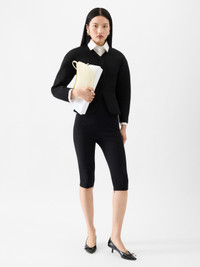 Cropped fitted jacket - Cropped fitted shape - Bonded tailoring wool - Collarless - Cropped rounded sleeves - Hidden buttoned closure - Fitted waist - Jetted pockets The model is 177cm and wears a size 34 100% Polyester / Lining: 52% Viscose - 48% Cotton Made in France Ref. JAW00103AW00633990