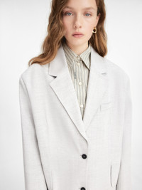 LES SCULPTURES Oversized blazer - Straight, oversized fit - Notched lapel - Chest welt pocket - Two button closure - Seamless flap pockets - Buttoned cuffs - Back slit The model is 176 cm and wears a size 34 100% Viscose / Lining: 100% Viscose Made in Portugal Ref.241JA054-1545-910