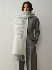 Fringe logo scarf - Wool fringe scarf - Solid color yarn - Jacquard logo - 12 cm fringe on each end - 180 x 35 cm 100% Wool Made in Italy Ref. ACU00435AOT4001950