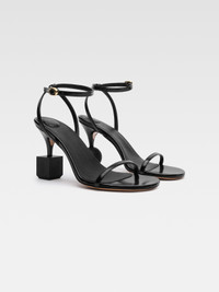 LA CASA Geometric heel sandals - Smooth leather sandals - Round toe - Adjustable ankle straps with metal buckle - Embossed logo on insole - Leather sole and lining - Leather-covered heel - Wooden circle and square heel charm - Heel height: 9cm 100% Calf leather / Sole: 100% Calf leather Made in Italy Ref. 243FO149-4036-990