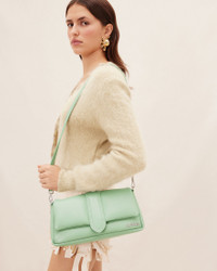 Le Raphia Puffed flap bag - Soft padded leather bag - Magnetic flap tab closure - Double shoulder straps to carry on the shoulder or across the chest - Engraved lobster clasp - Back patch pocket - Interior pocket - Gold metal logo and hardware - Fully lined in cotton - 28 x 12.5 cm 100% Lambskin/Lining - 100% Cotton Made in Italy Ref.231BA052-3073-560