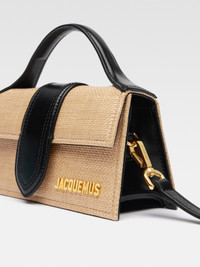 LA CASA Mini flap bag - Faux raffia and smooth leather structured handbag - Padded top-handle - Magnetic flap tab closure - Long removable strap - Engraved lobster clip - Patch pocket on the back - Topstitched details - Gold-plated logo and hardware - Fully lined in cotton - Dyed edges - Height: 9cm - Length: 17.5cm 100% Polyamide / Lining: 100% Cotton Made in Italy Ref. 213BA006-3215-1FY