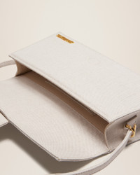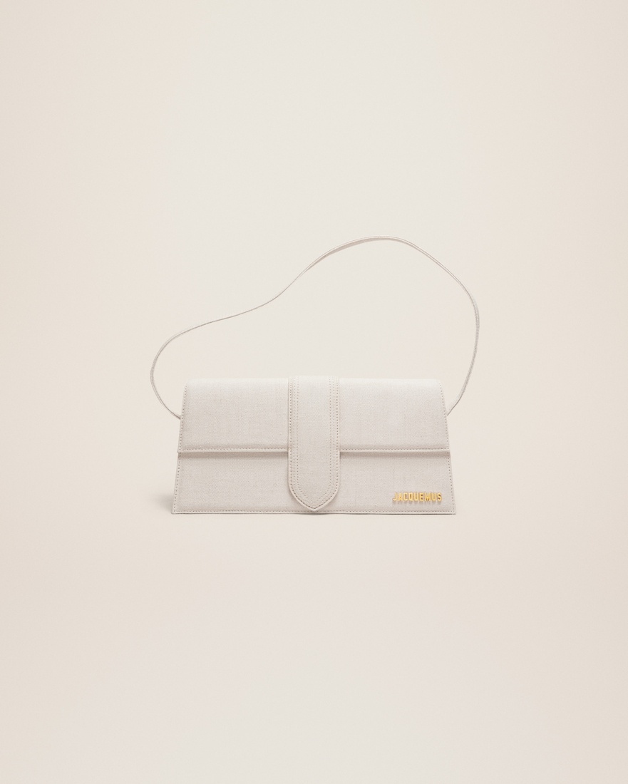 Les Classiques Long flap bag - Linen structured shoulder bag - Magnetic flap tab closure - Slim shoulder strap - Back patch pocket - Interior card pocket - Gold metal logo and hardware - Fully lined in cotton - 28 x 13.5 cm 49% Linen - 33% Cotton - 18% Acrylic Made in Italy Ref. 221BA013-3071-140