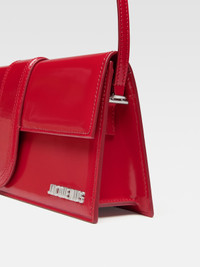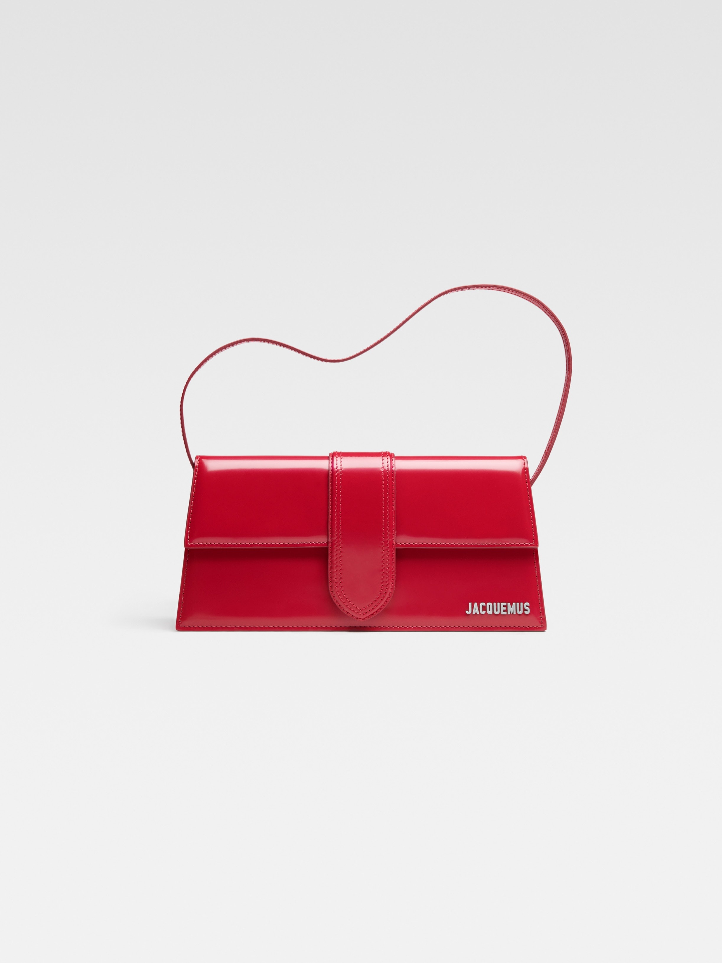 LE CHOUCHOU Long flap bag - Patent leather structured shoulder bag - Magnetic flap tab closure - Slim shoulder strap - Back patch pocket - Interior card pocket - Silver metal logo and hardware - Fully lined in cotton - Dyed edges - 28 x 13.5 cm Each leather is unique and has been carefully selected by our team. Irregularities and variations in shade are natural. To maintain the original condition of this item, we recommend to avoid direct and over-exposure to light and contact with cosmetics, water or heat. We advise to store this item into the dust bag in a dry place. 100% Calf leather / Lining - 100% Cotton Made in Italy Ref. 221BA013-3128-470