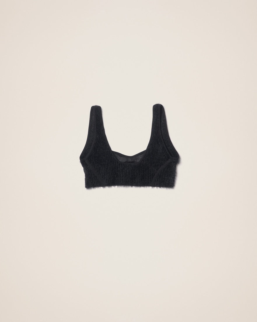 LE PAPIER Fluffy bra - Knit bra - Mismatched knits - Ribbed knit - Fluffy straps 70% Polyamide/Nylon - 12% Cotton - 12% Viscose - 5% Polyester - 1% Elastane Made in Portugal Ref.223KN096-2144-990