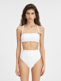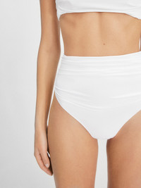 Ruched bikini bottom - High-waisted - Low-cut shape - Tanga cut bottom - Gathers on sides The model is 177 cm and wears a size XS 80% Recycled polyester - 16% Elastane - 4% Polyester / Lining: 59% Polyamide - 41% Elastane Made in Portugal Ref.241SW037-2294-100
