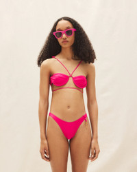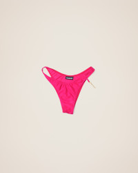 logo-charm bikini bottoms logo-charm bikini bottoms from Jacquemus featuring hot pink, recycled polyester blend, logo charm, elasticated waistband and low-rise. Be mindful to try on swimwear over your own garments.. Conscious: This item is made from at least 50% recycled or upcycled materials. For recycled synthetic clothing products we highly recommend using a microfibre-catching washing bag to ensure that no microplastics that can pollute water are released in the process.. Imported Composition Recycled Polyester 84%, Spandex/Elastane 16%