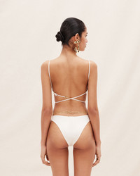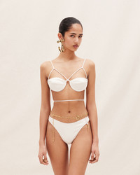 Été Signature bikini bottoms - Low cut bikini bottom - Gold metal charm logo - Tanga cut - Lingerie inspired The model is 177 cm and wears a size S 93% Recycled polyester - 7% Elastane Made in Portugal Ref.223SW025-2133-130