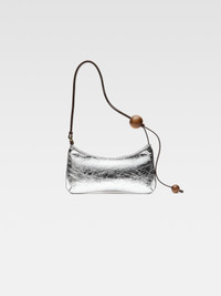 LA CASA Beaded shoulder-bag - Crinkled silver shoulder-bag - Adjustable buckled shoulder strap - Wooden beads - Zip closure - Piped outline - Interior patch pocket - Gold-plated logo and hardware - Fully lined in cotton - Length: 27cm - Height: 10.5cm 100% Cow leather / Lining: 100% Cotton Made in Italy Ref. 231BA057-3192-980