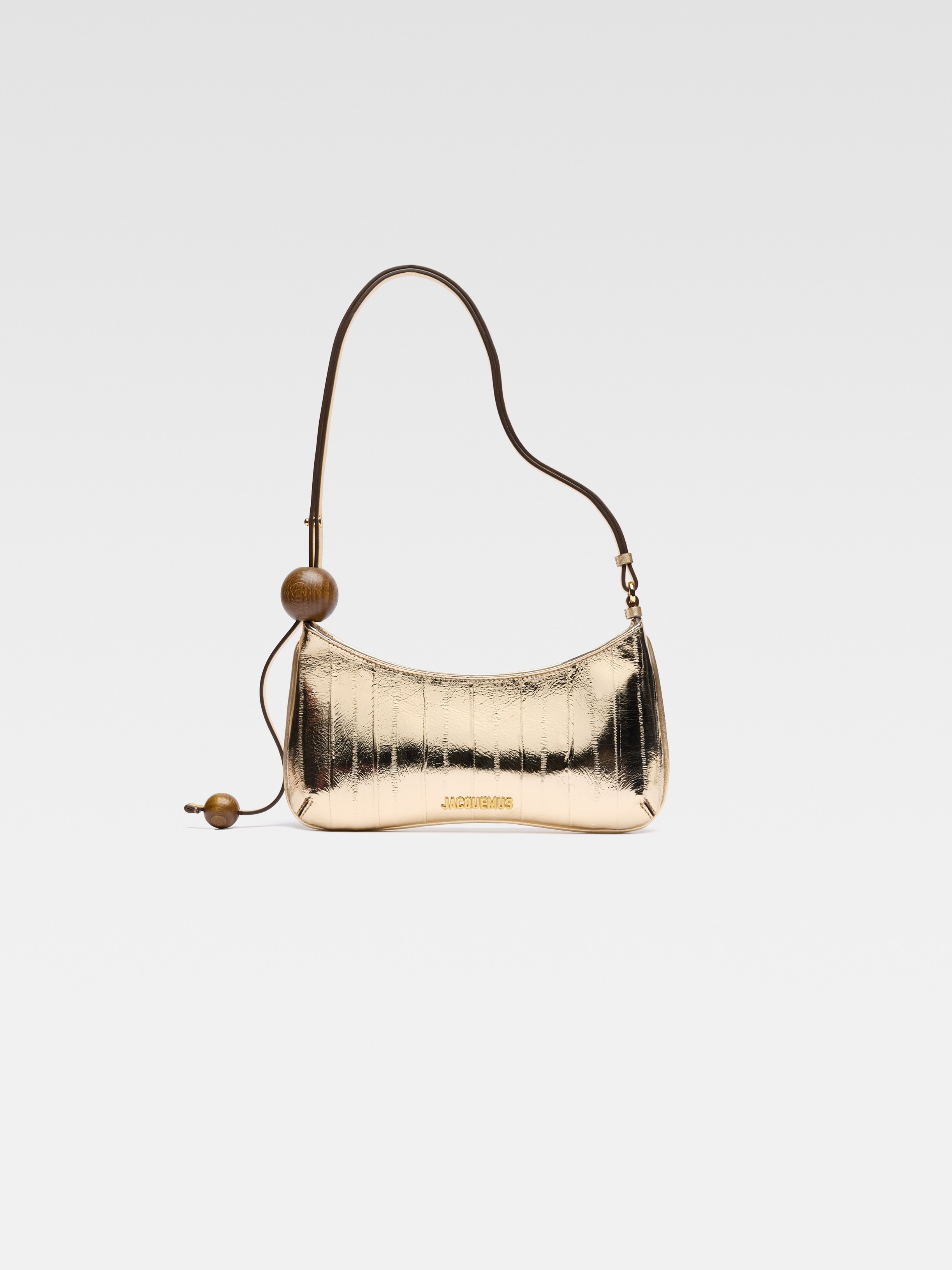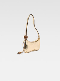 LA CASA Beaded shoulder-bag - Shoulder-bag in gold-mirrored tanned hagfish leather - Adjustable buckled shoulder strap - Wooden beads - Zip closure - Piped outline - Interior patch pocket - Gold-plated logo and hardware - Fully lined in cotton - Length: 27cm - Height: 10.5cm 100% Hagfish / Lining: 100% Cotton Made in Italy Ref. 231BA057-3169-280
