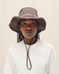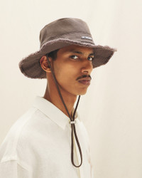 LE PAPIER Frayed expedition hat - Cotton bucket hat - Long adjustable strap - Silver metal logo - Topstitched brim 100% Cotton Made in Bulgaria Ref.213AC002-5012-850