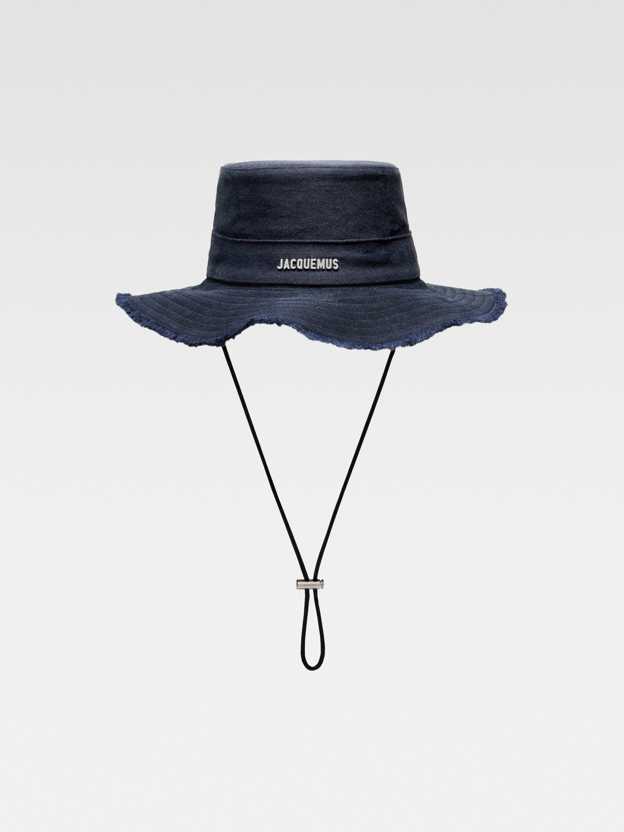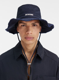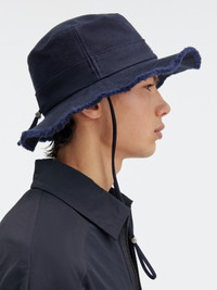 LES SCULPTURES Frayed expedition hat - Cotton bucket hat - Long adjustable strap - Silver metal logo - Topstitched brim 100% Cotton Made in Bulgaria Ref.213AC002-5106-390