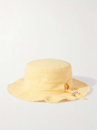 EDITORS'NOTES Jacquemus' 'Le Bob Artichaut' bucket hat has such a cool, retro vibe. It's made from cotton-twill and has frayed edges and features the label's logo in gold-tone lettering across the front. Use the toggle to secure the fit. DETAILS & CARE - Pastel-yellow cotton-twill - 100% cotton