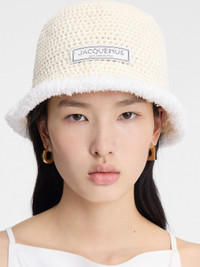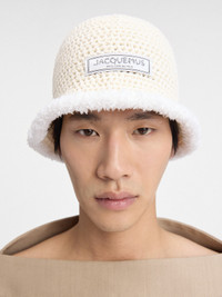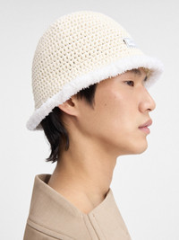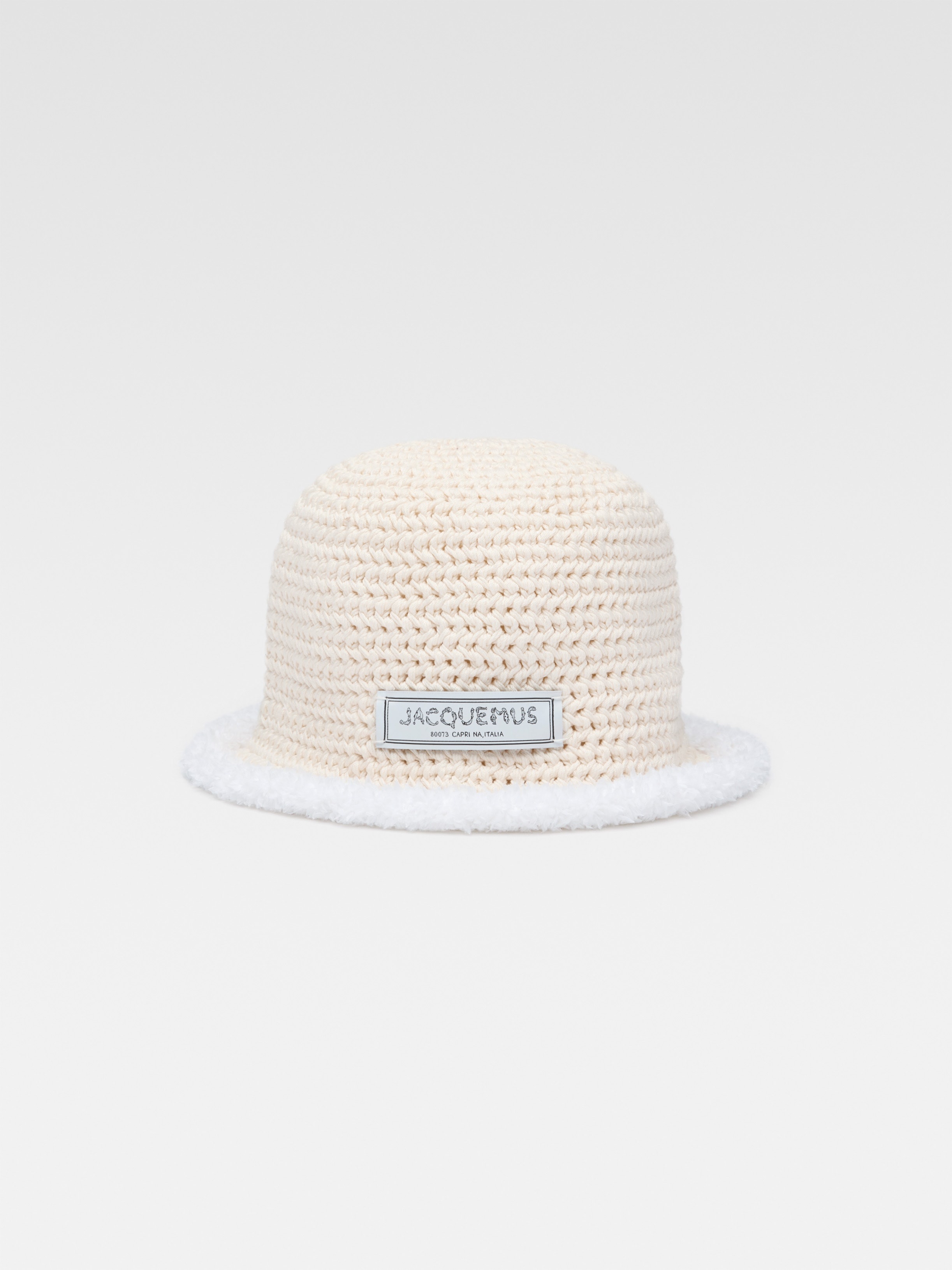 LA CASA Cable knit bucket hat - Cable knit hat - Contrast fabrications - Bell shape - Contrast fluffy edges - Capri logo patch 100% Cotton Made in Italy Ref. 246AC691-5216-110