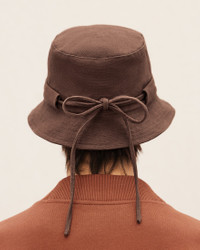Les Classiques Knotted bucket hat - Cotton bucket hat - Silver metal logo - Visible topstitched drawcord in the back that can be tied in a bow - Topstitched brim 100% Cotton/Lining - 100% Cotton Made in Madagascar Ref. 223AC001-5035-850