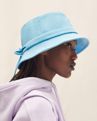 LE PAPIER Knotted bucket hat - Cotton bucket hat - Silver metal logo - Visible topstitched drawcord in the back that can be tied in a bow - Topstitched brim 100% Cotton Made in China Ref.223AC001-5012-330