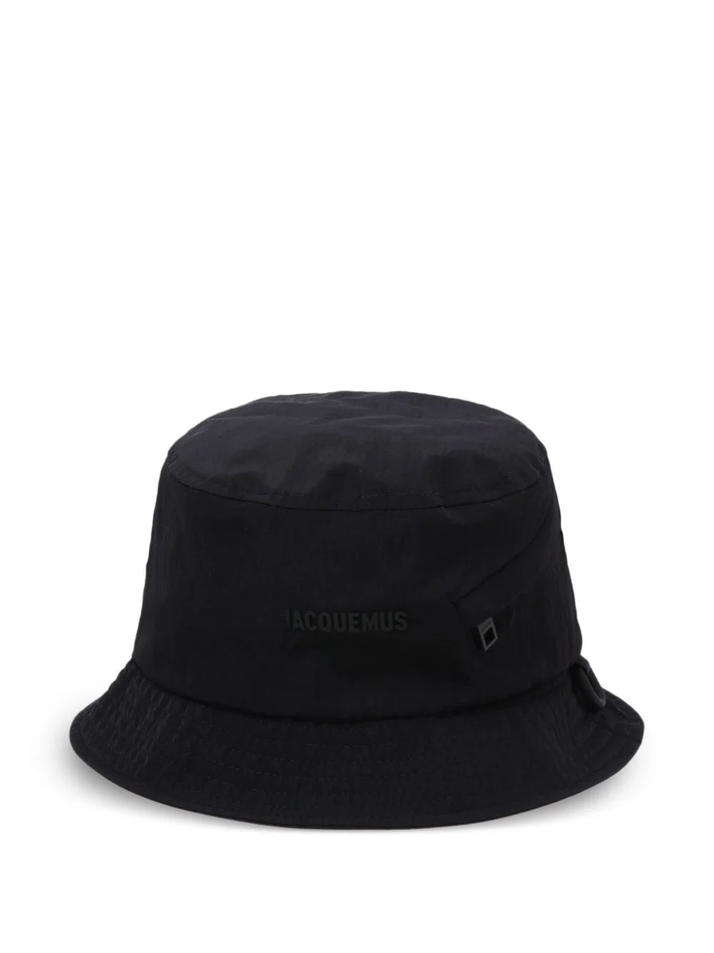 logo-lettering bucket hat Highlights - Black - Pull-on style - Side zip-fastening pocket - Flat crown - Dropped narrow brim Made in Italy Composition Polyamide 100%