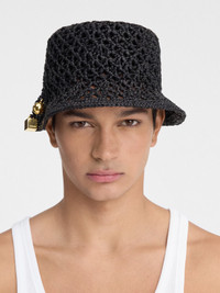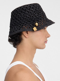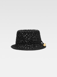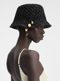 LA CASA Raffia charm bucket hat - Woven raffia hat - Hand-woven crochet - Gold-plated sphere and cube charms braided on the side 100% Raffia Made in Madagascar Ref.246AC688-5046-990