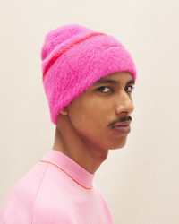 LE PAPIER Fluffy beanie - Stretchy knitted hat - Foldable shape - Contrast stripe - Contrast embroidered logo - 26 cm 98% Polyamide/Nylon - 2% Elastane Made in Italy Ref.226AC414-5080-430
