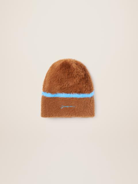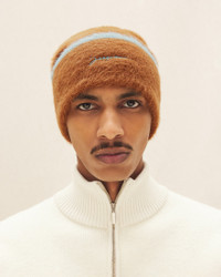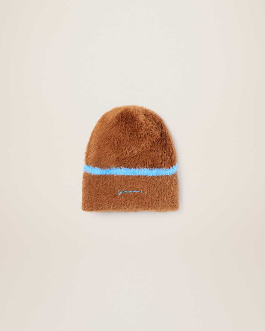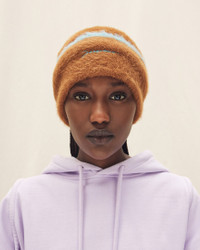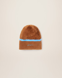 LE PAPIER Fluffy beanie - Stretchy knitted hat - Foldable shape - Contrast stripe - Contrast embroidered logo - 26 cm 98% Polyamide/Nylon - 2% Elastane Made in Italy Ref.226AC414-5080-850