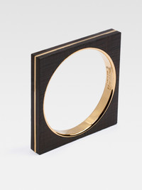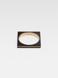 LA CASA Geometric bangle bracelet - Plated brass with a smooth finish and olive wood - Square shape with round interior - Engraved logo - Width: 6.5cm 85% Brass - 15% Wood Made in Italy Ref. 233JW574-5213-282