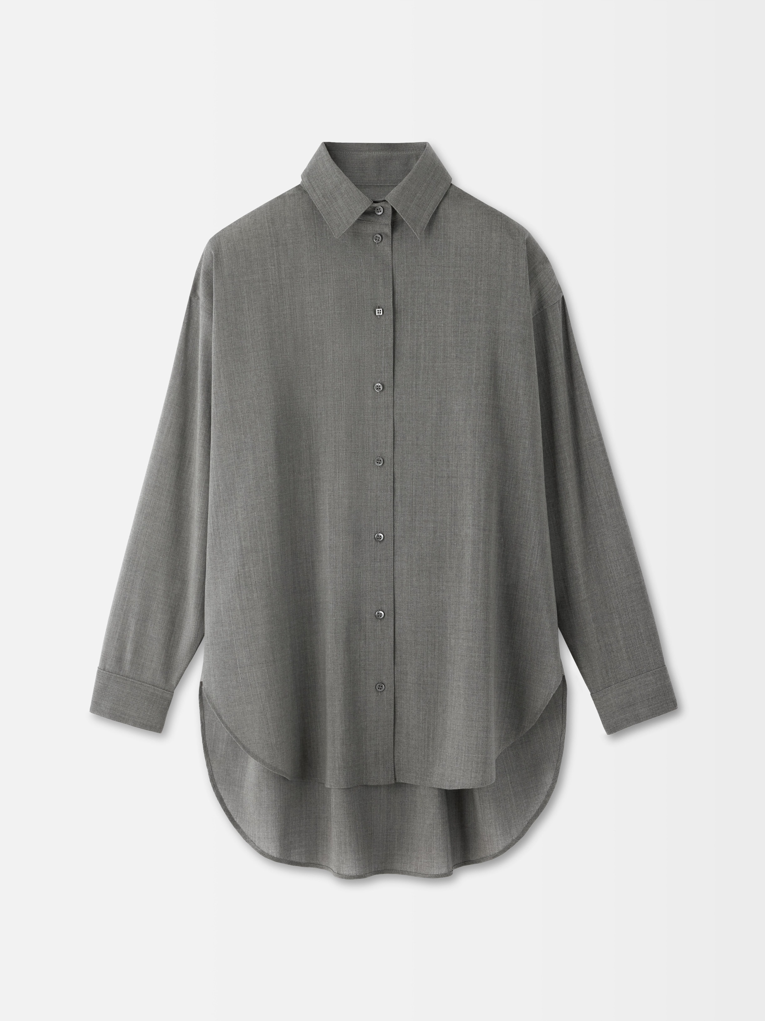 Oversized shirt - Long oversized fit - Stretch virgin wool - Pointed collar - “J” embroidered on the front - Square buttoned cuffs - Back yoke with pleat - Rounded hem - Mother-of-pearl buttons The model is 180cm and wears a size 34 98% Virgin Wool - 2% Elastane Made in France Ref. SHW00546AW00653950