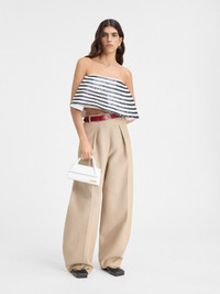 Long leather handbag - Reinforced handle - Magnetic flap closure - Adjustable, removable strap - Interior pocket - Gold metal logo and hardware - Fully lined - Painted edges - 22 x 10.5 cm Each leather is unique and has been carefully selected by our team. Its irregularities and color variations are natural. To preserve the original condition of this piece, we recommend keeping it out of the sun and away from cosmetics, water and heat sources. It can be stored in its pouch in a dry place. 100% Leather Made in Italy Ref. BAW00004AC01C01100