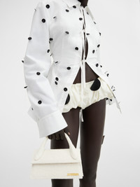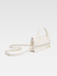 LE CHOUCHOU Long leather handbag - Textured cotton structured bag - Reinforced handle - Magnetic flap closure - Adjustable, removable strap - Engraved lobster clip - Interior pocket - Gold metal logo and hardware - Fully lined in cotton - Dyed edges - 22 x 10.5 cm 90% Cotton - 10% Polyamide / Lining : 100% Cotton Made in Italy Ref.213BA004-3078-110