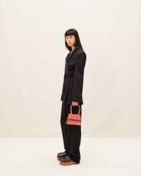 Le Raphia Leather handbag - Smooth leather structured bag - Reinforced handle - Magnetic flap closure - Long removable strap - Engraved lobster clip - Interior pocket - Gold metal logo and hardware - Fully lined in cotton - Dyed edges - 18 x 13.5 cm 100% Cowskin/Lining - 100% Cotton Made in Italy Ref.213BA002-3088-480