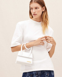 Les Classiques Coiled leather handbag - Extendable top handle that can be wrapped and snapped closed - Magnetic flap closure - Long removable strap - Interior pocket - Gold metal logo and hardware - Fully lined - Painted edges - 18 x 13,5 cm Each leather is unique and has been carefully selected by our team. Its irregularities and color variations are natural. To preserve the original condition of this piece, we recommend keeping it out of the sun and away from cosmetics, water and heat sources. It can be stored in its pouch in a dry place. 100% Leather Made in Italy Ref. 213BA005-3000-100