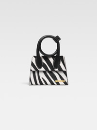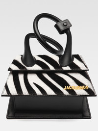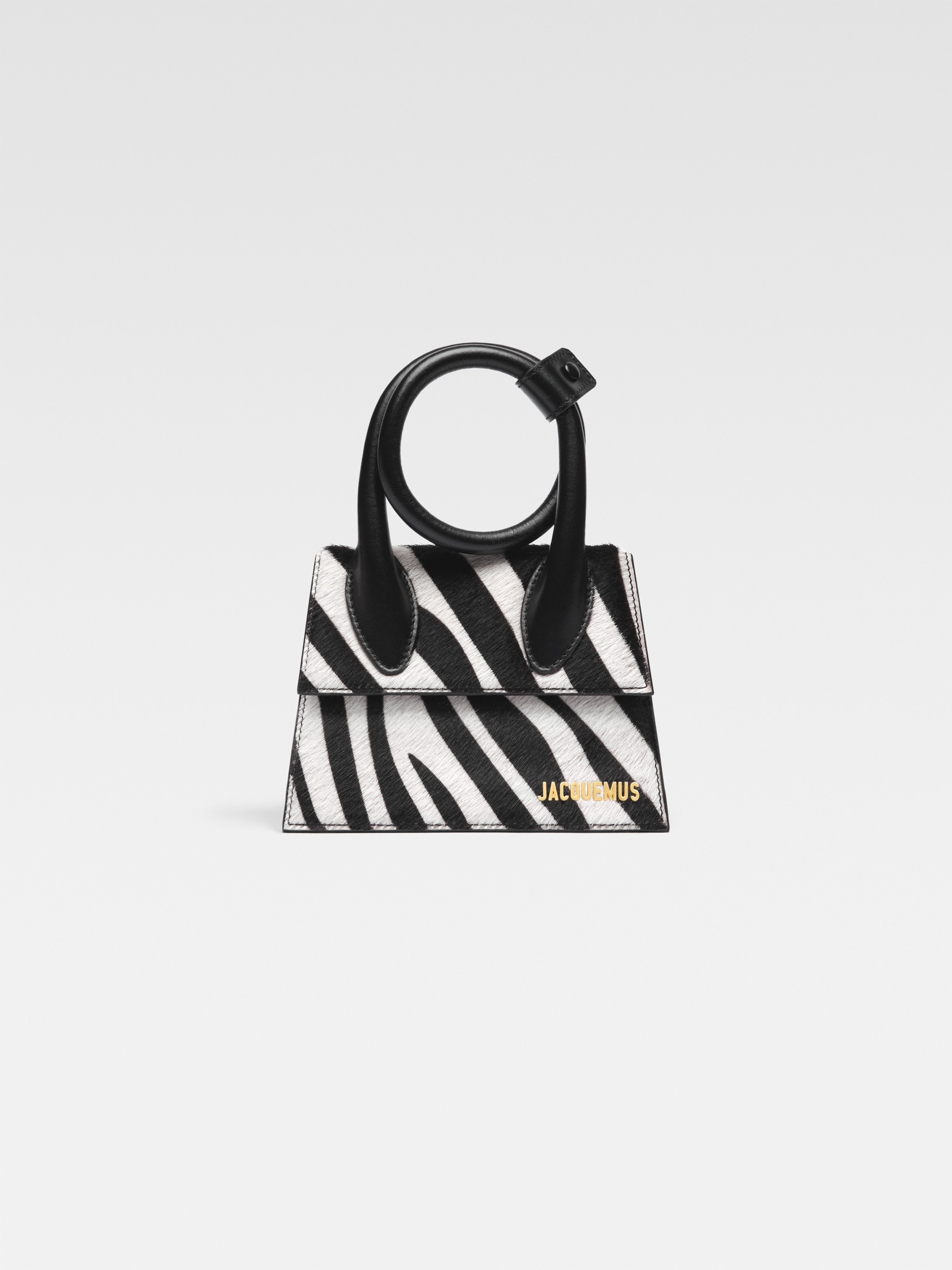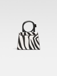 LA CASA Coiled handbag - Zebra-printed calfskin pony-hair structured bag - Extendable top-handle that can be wrapped and snapped closed - Magnetic flap closure - Long removable shoulder strap - Engraved lobster clip - Interior pocket - Gold-plated logo and hardware - Fully lined in cotton - Dyed edges - Length: 13.5cm - Height: 18cm 100% Cotton Made in Italy Ref.213BA005-3209-9DZ