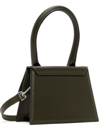 Buffed leather shoulder bag. · Rolled carry handle · Adjustable and detachable crossbody strap · Logo hardware at face · Magnetic press-stud flap · Card slot at interior · Twill lining · H5.5" x W7" x D3" Supplier color: Dark Khaki Leather. Made in Italy 252553F048084