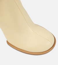 Jacquemus brings a characterful vision of French fashion to the design of every new collection. The Les Bottines Rond Carré are made in Italy from smooth leather atop rounded toes and thin heels. Product Details - Sole: leather insole, rubber sole - Comes with dust bag - Upper: leather - Closure: zipped back - Designer color name: Ivory - Made in Italy - Comes with a box - Toe shape: round toe - Item number: P00828910 Size & Fit - True to size - Half sizes please take the next size down - European sizes - 8,5cm-3.5" heel (size EU 38)
