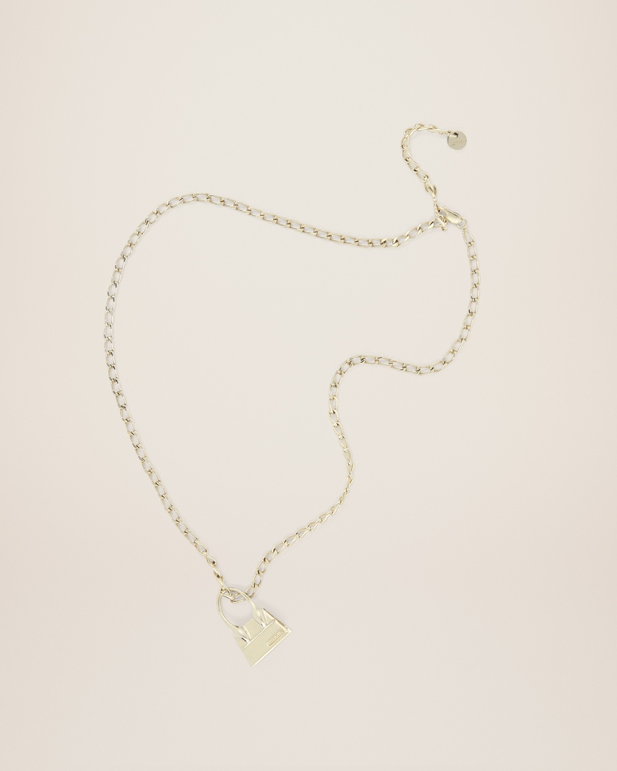 LE PAPIER Chain necklace with Chiquito pendant - Pale gold-plated brass - Lobster clasp fastening - Logo engraved disc - Pendant: 3 cm - Chain: 57 cm 100% Brass Made in Italy Ref. 213JW003-5800-270