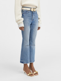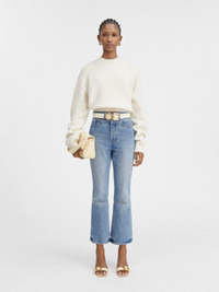 Les Classiques Cropped flared jeans - High-waisted - Washed indigo denim - Cropped flared leg - “J” belt loop - Five pockets - Metal studs and rivets - Button fly - Horizontal seam on the knee - Large denim patch above back pocket - Contrast stitching The model is 180 cm and wears a size 24 100% Cotone Made in Italy Ref.241DE035-1513-33C