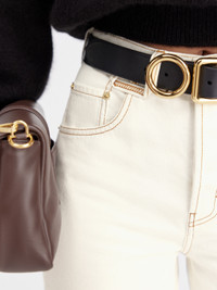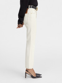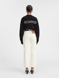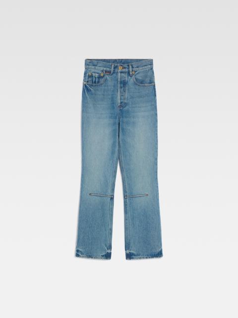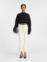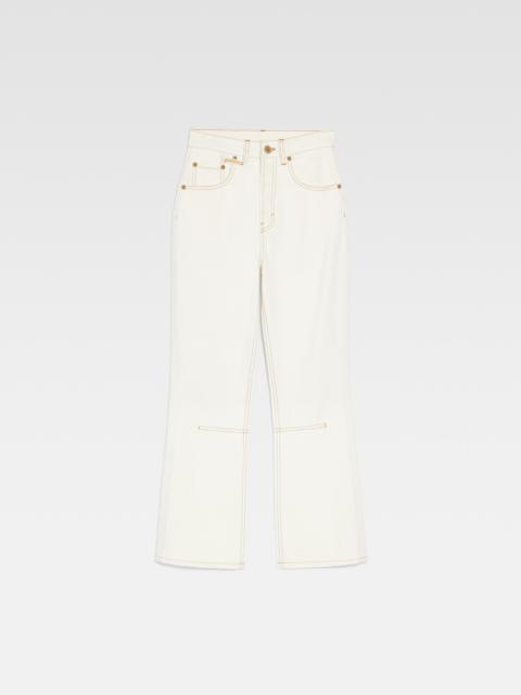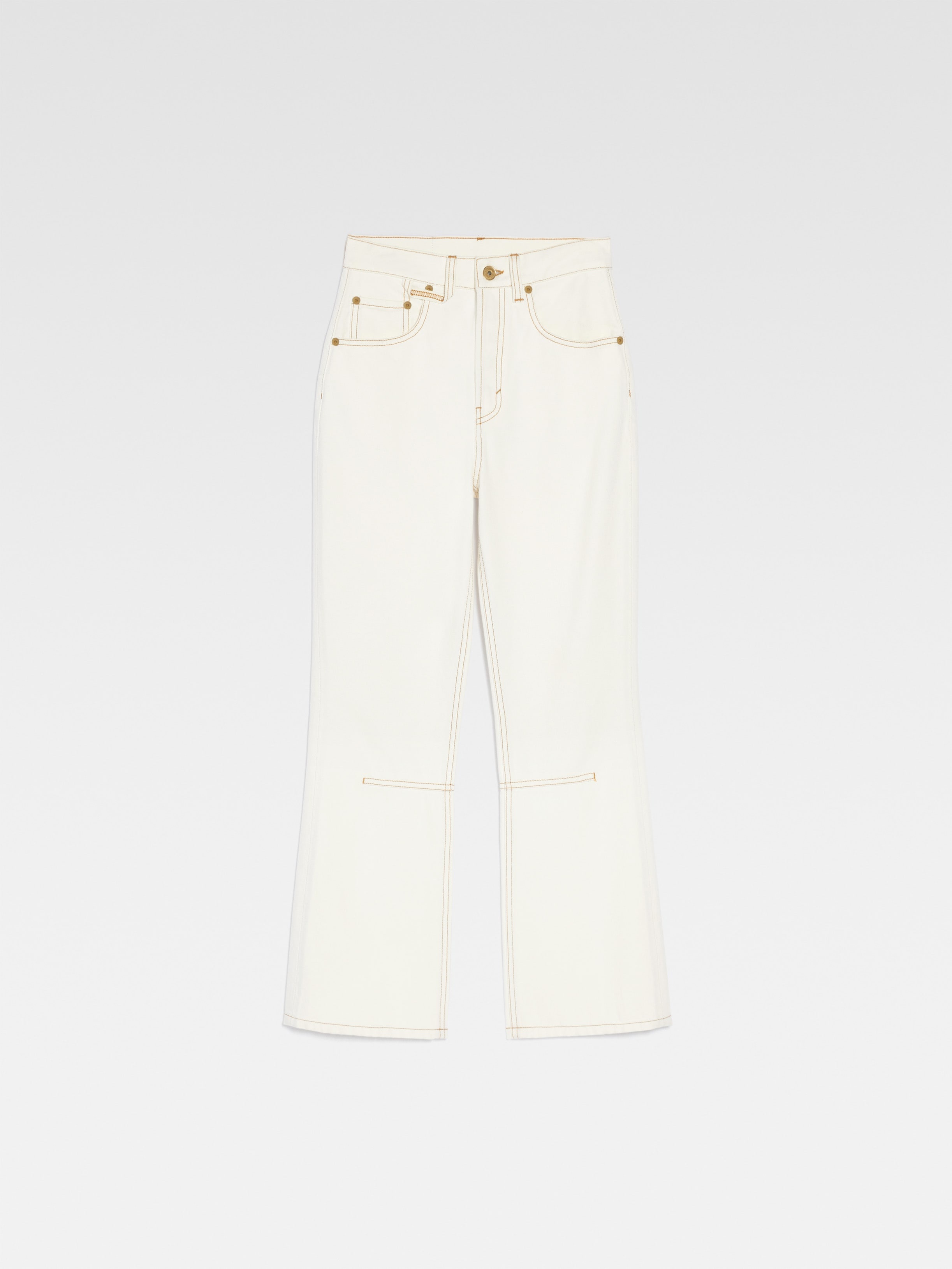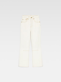 Les Classiques Cropped flared jeans - High-waisted - Raw denim - Cropped flared leg - “J” belt loop - Five pockets - Metal studs and rivets - Button fly - Horizontal seam on the knee - Large denim patch above back pocket - Contrast stitching The model is 178 cm and wears a size 24 100% Cotone Made in Italy Ref.241DE035-1514-11C