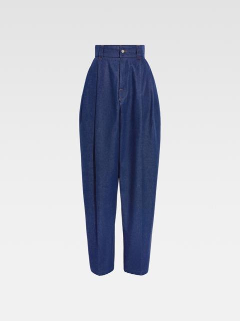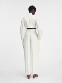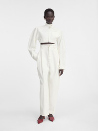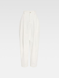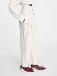 LA CASA Ultra high-waisted jeans - Loose, extra high-rise fit - Off-white denim - Belt loops with "J" loop on back - Contrast denim stitching with red detail - Button fly with one red button - Slant pockets - Pressed pleats - Wide, tapered legs - Back patch pockets - Engraved silver metal buttons The model is 177cm and wears a size 24 100% Cotton Made in Italy Ref. 243DE055-1514-110